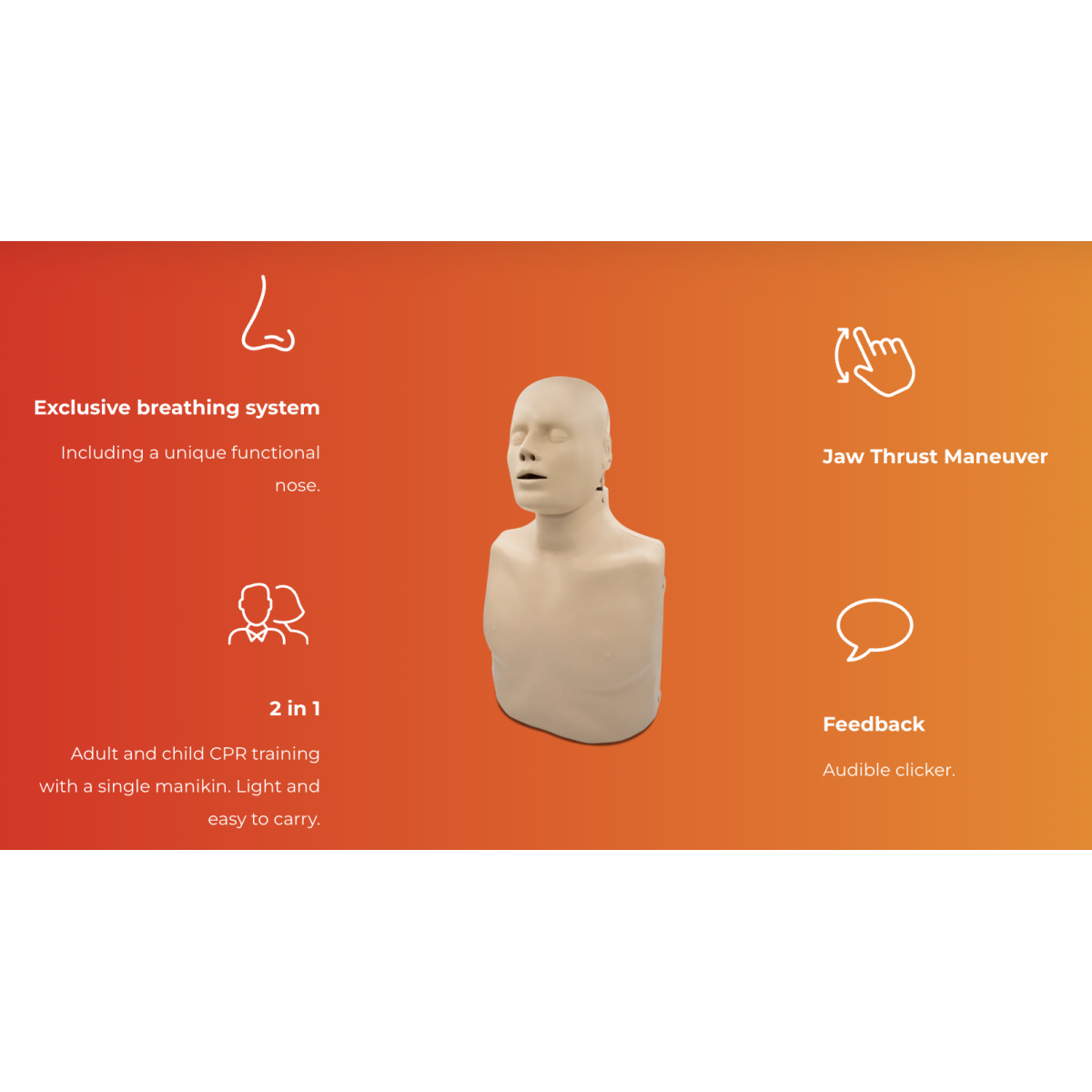 1 × Infant CPR manikin – infant-appropriate chest compliance and ventilation with chest rise.